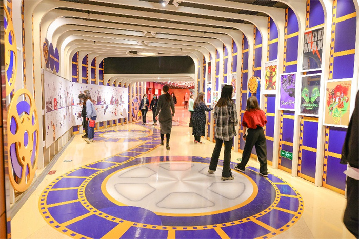回望百年经典,再现华纳传奇。bb电子官网登录商城彩虹连廊内的华纳历史回顾墙,呈现了华纳经典影视作品海报和百年历程。请放慢脚步,别错过有趣的海报拼图互动体验。